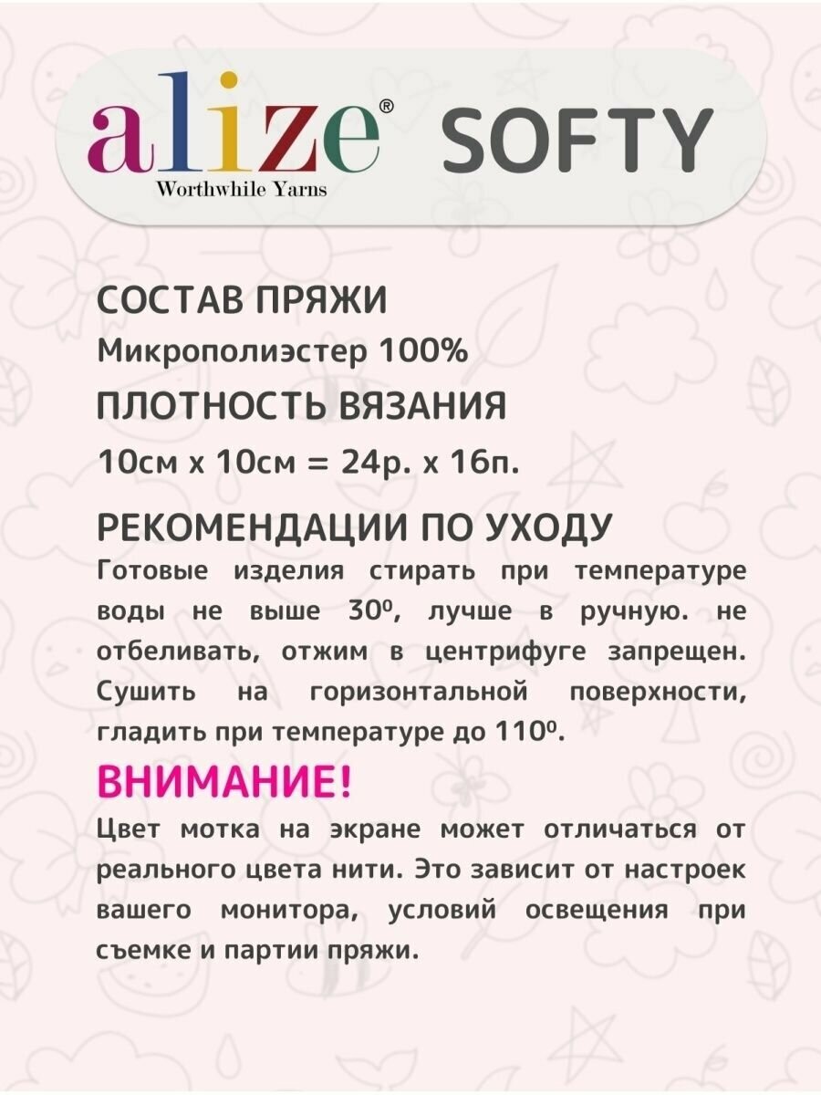 Пряжа ALIZE SOFTY, пудра - 340, 100% микрополиэстер, 5 мотков, 50 г, 115 м. 689 ₽