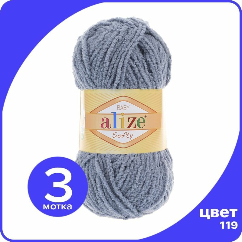 Пряжа Alize Softy серый (119), 100%микрополиэстер, 115м, 50г, 3шт информация:
