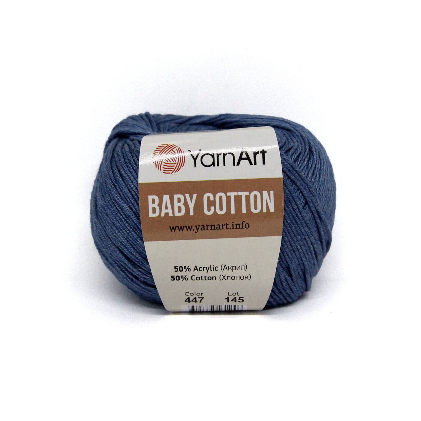 10 цен на Пряжа YarnArt Baby cotton темно-голубой (447), 50%хлопок/50%акрил, 165м, 50г, 1шт