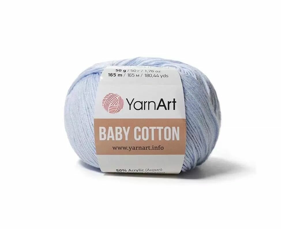 Пряжа YarnArt Baby cotton бледно-голубой (450), 50%хлопок/50%акрил, 165м, 50г, 1шт информация: