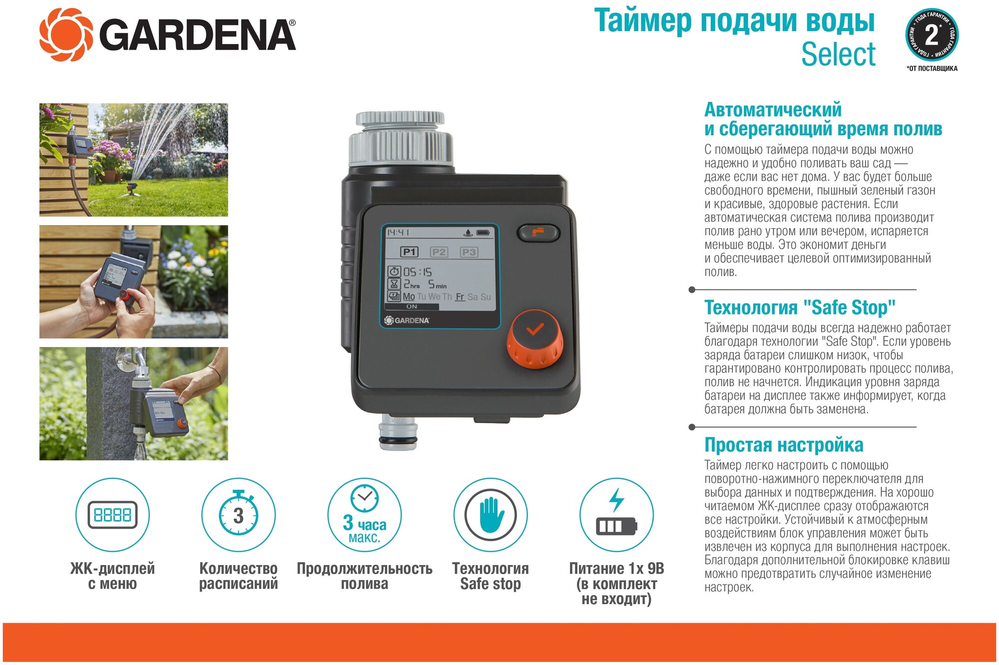 Таймер подачи воды Gardena Select 01891-29.000.00 информация: