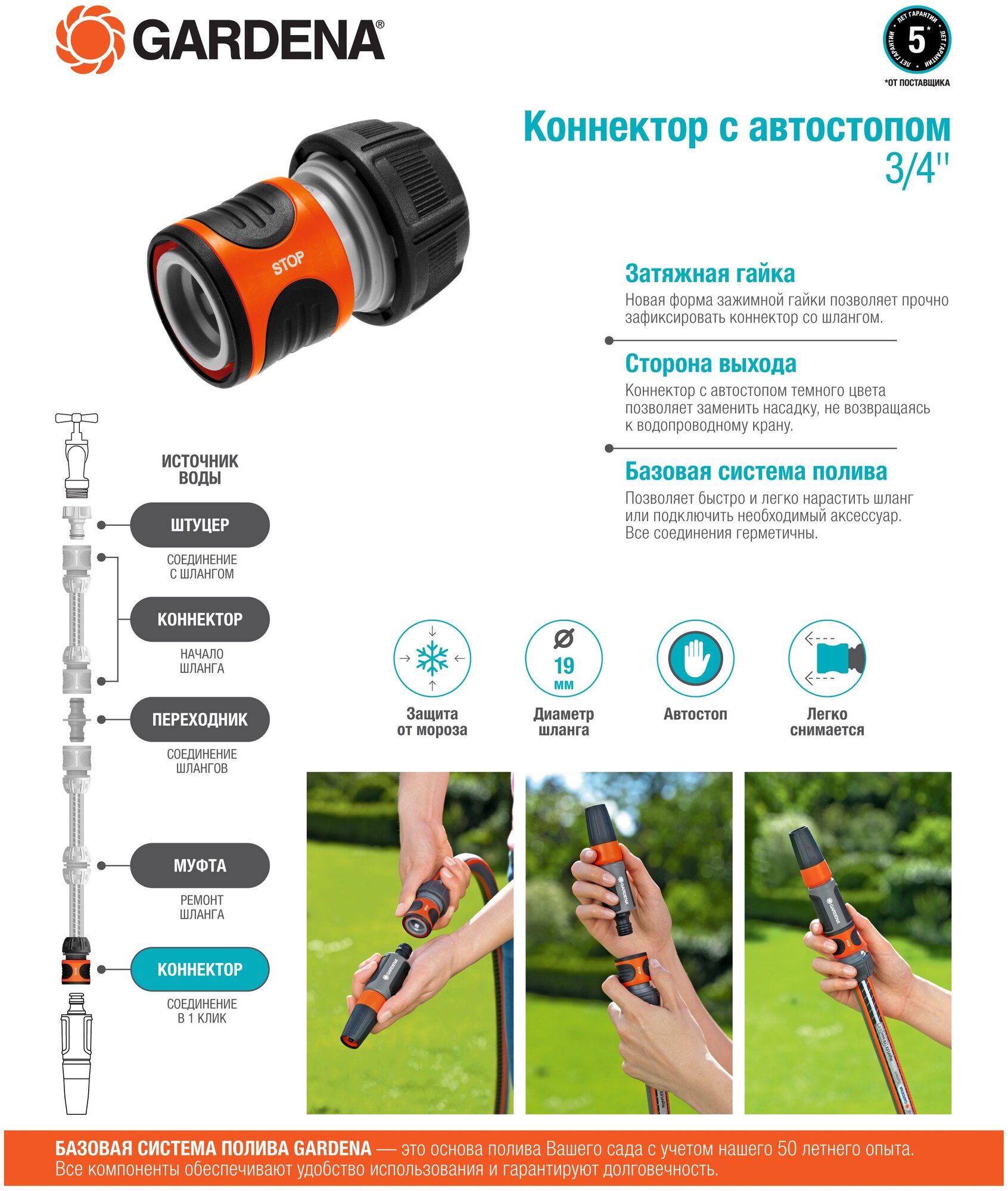 10 цен на Gardena Коннектор с автостопом 3/4"