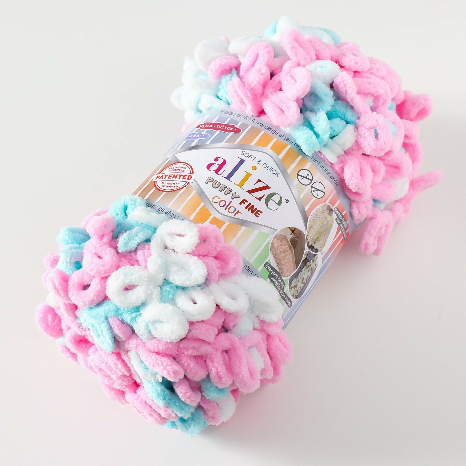 Отзывы на Пряжа Alize Puffy fine color белый-розовый-бирюза (6377), 100%микрополиэстер, 14.5м, 100г, 1шт