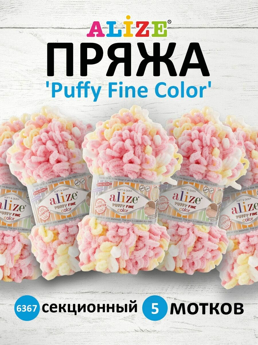 10 цен на Пряжа для вязания ALIZE 'Puffy Fine Color', 100г, 14,5м (100% микрополиэстер) (6367 секционный), 5 мотков
