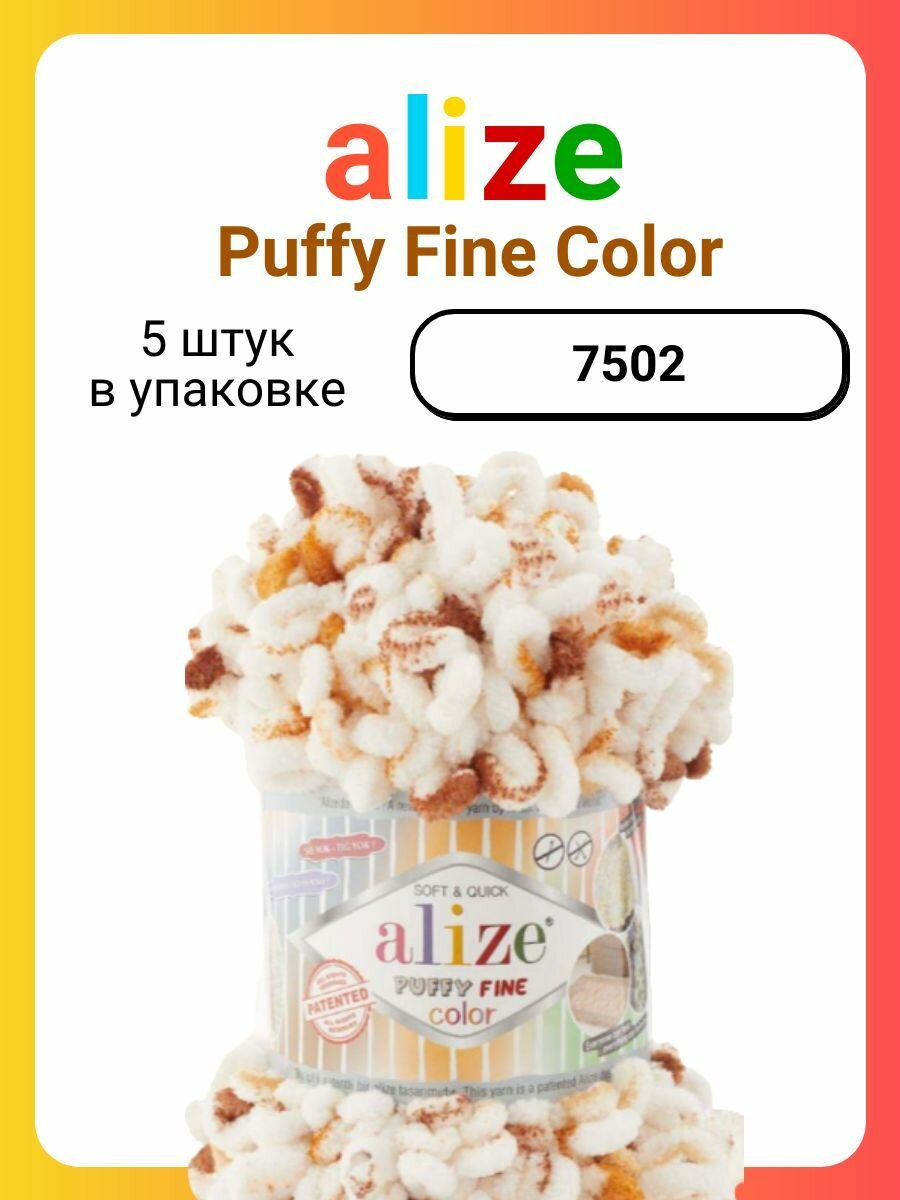 10 цен на Пряжа для вязания Alize Puffy Fine Color 7502, 100 г, 14 м, 5 штук