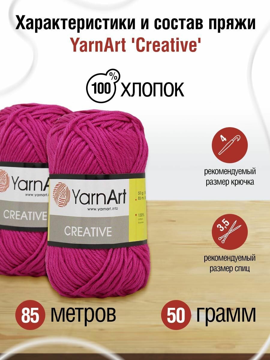 Пряжа YarnArt Creative 50г, 85м (ЯрнАрт Креатив) Нитки для вязания, 100% хлопок, цвет 243 малиновый, 1шт