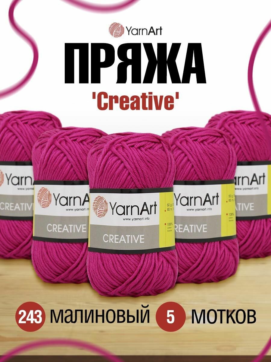 Пряжа YarnArt Creative малиновый (243), 100%хлопок, 85м, 50г, 5шт информация: