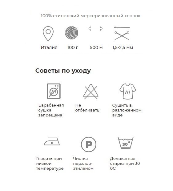 | Комплектация | Один моток пряжи весом 100 грамм |