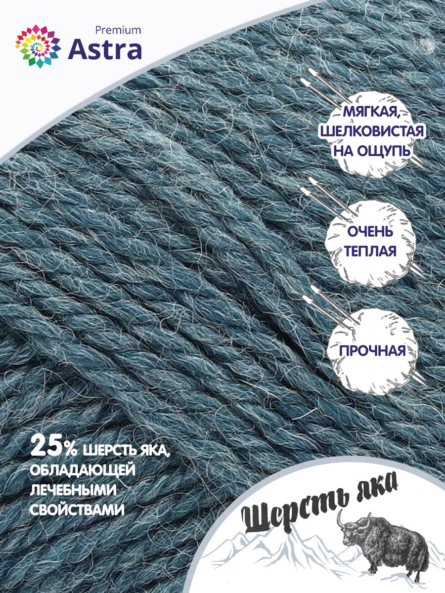 Пряжа для вязания Astra Premium 'Шерсть яка' (Yak wool) 100гр 120м (+/-5%) (25% шерсть яка, 50% шерсть, 25% фибра) (15 светлый джинс), 2 мотка информация: