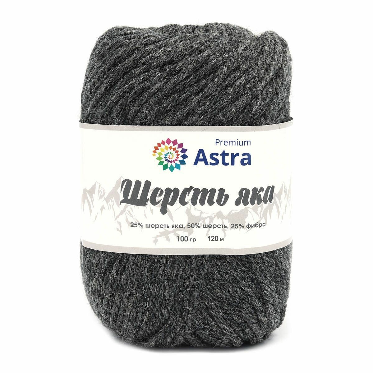 10 цен на Пряжа для вязания Astra Premium 'Шерсть яка' (Yak wool), 100 г, 120 м (+/-5%) (25% шерсть яка, 50% шерсть, 25% фибра) (14 графит), 2 мотка