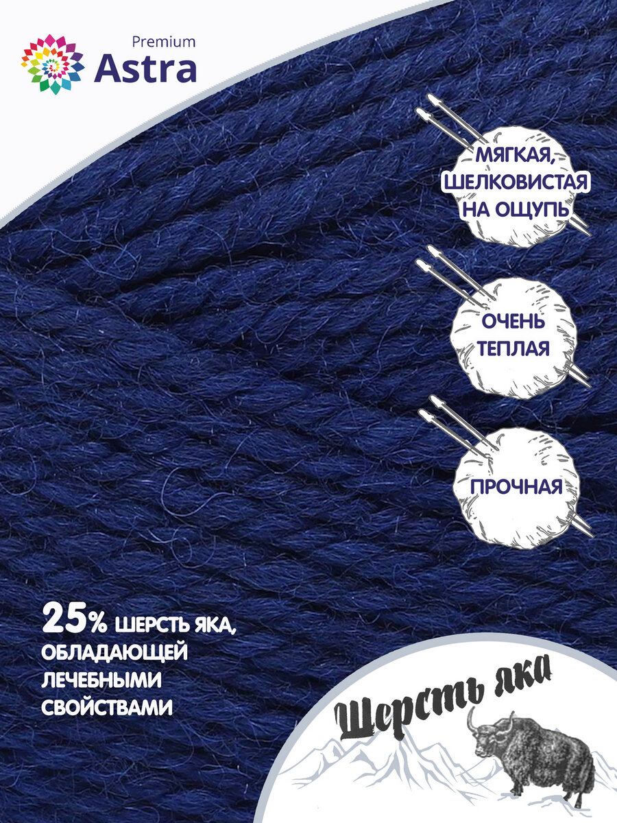 Пряжа для вязания Astra Premium 'Шерсть яка' (Yak wool), 100 г, 120 м (+/-5%) (25% шерсть яка, 50% шерсть, 25% фибра) (16 темно-синий), 2 мотка информация: