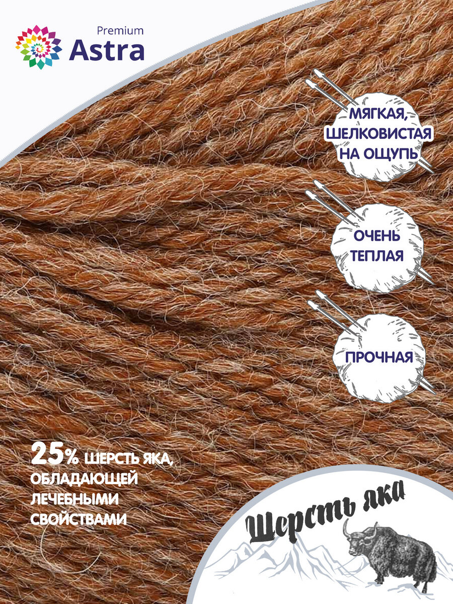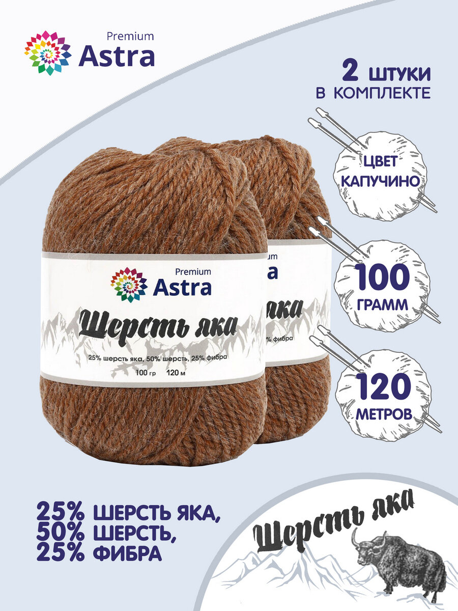 Пряжа для вязания Astra Premium 'Шерсть яка' (Yak wool) 100гр 120м (+/-5%) (25% шерсть яка, 50% шерсть, 25% фибра) (08 капучино), 2 мотка информация: