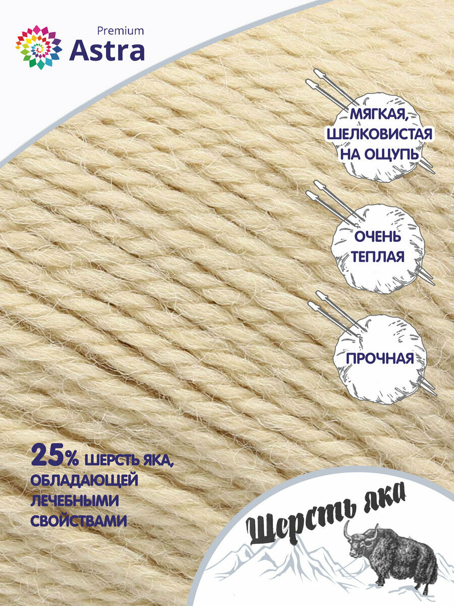Пряжа для вязания Astra Premium 'Шерсть яка' (Yak wool), 100 г, 120 м (+/-5%) (25% шерсть яка, 50% шерсть, 25% фибра) (06 молочный), 2 мотка информация: