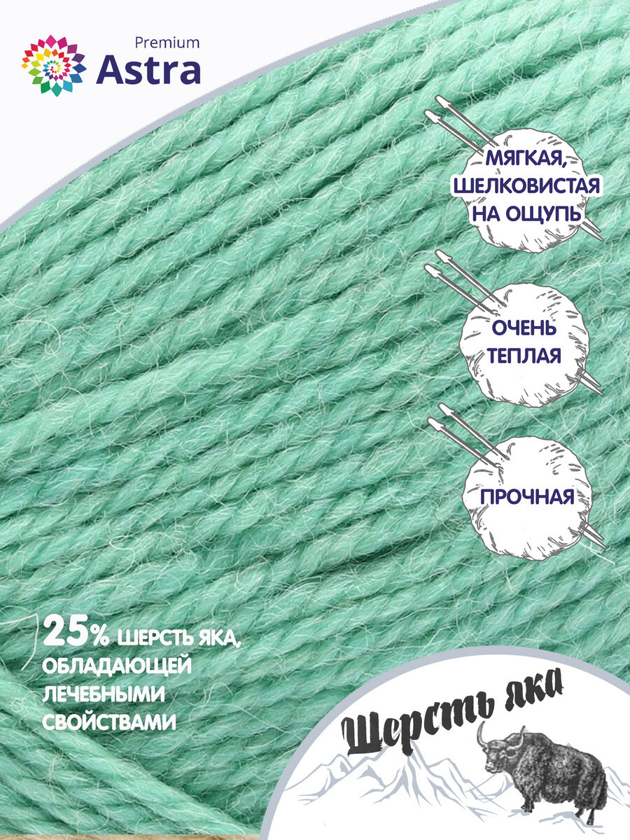 Пряжа для вязания Astra Premium 'Шерсть яка' (Yak wool) 100гр 120м (+/-5%) (25% шерсть яка, 50% шерсть, 25% фибра) (02 мятный), 2 мотка информация: