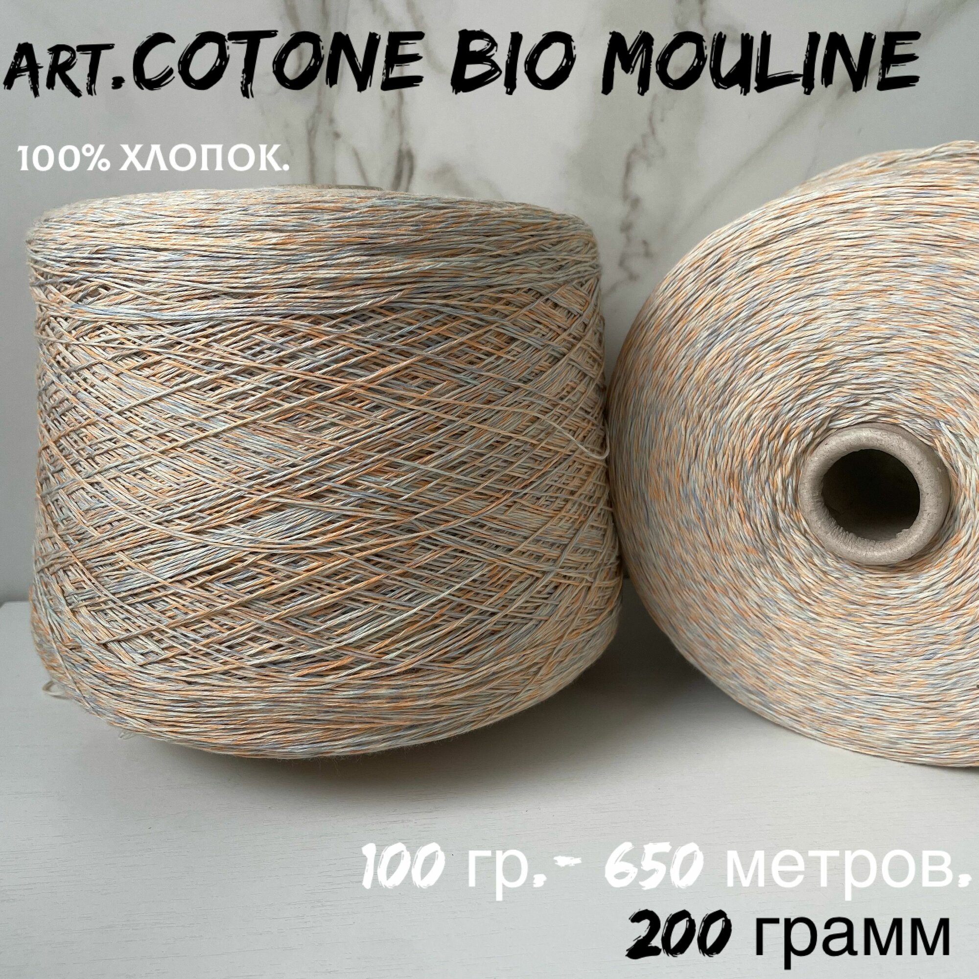 Итальянская бобинная пряжа для вязания 100% хлопок art. Cotone bio mouline, 200 грамм информация: