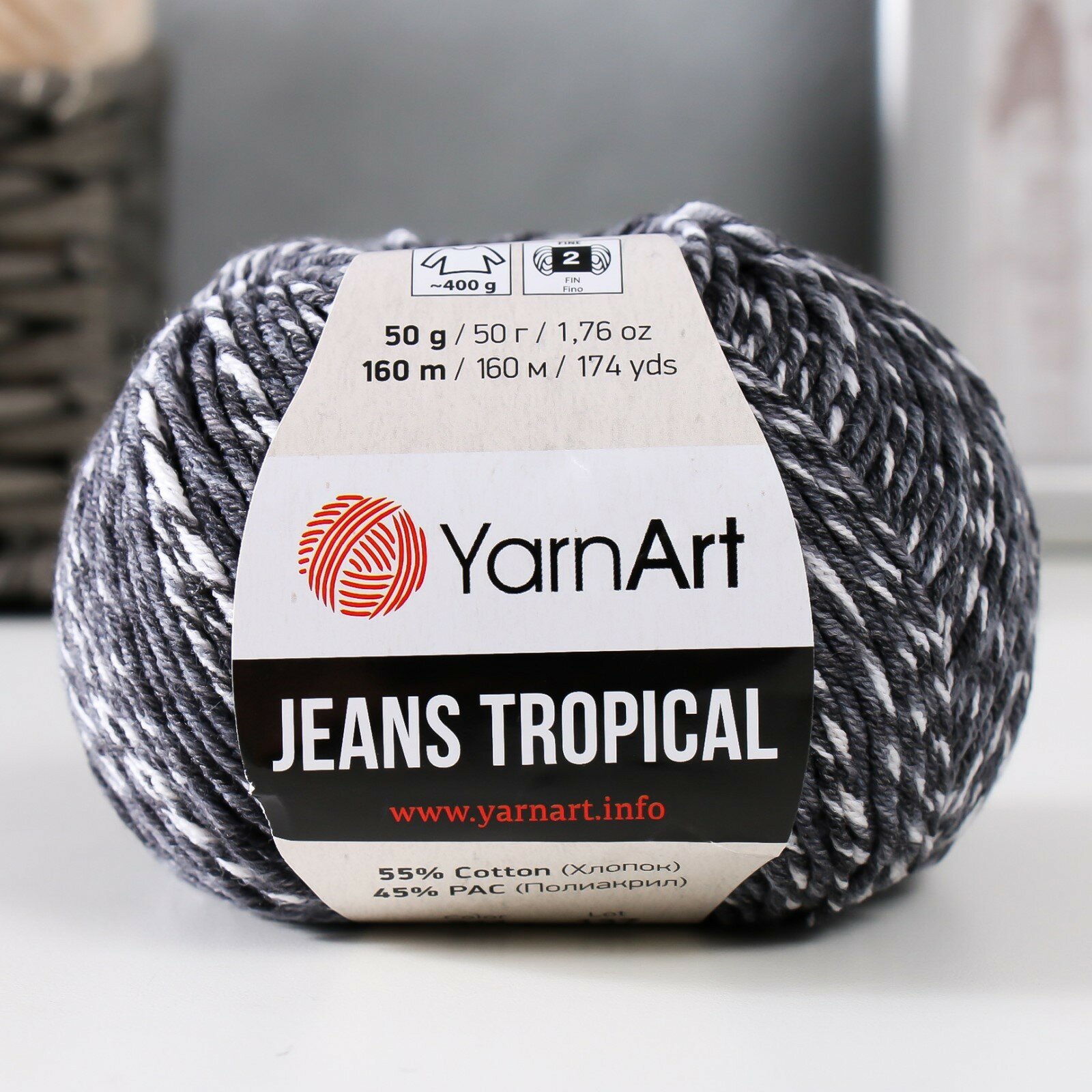 Пряжа YarnArt Jeans tropikal черно-белый (611), 55%хлопок/45%акрил, 160м, 50г, 1шт информация: