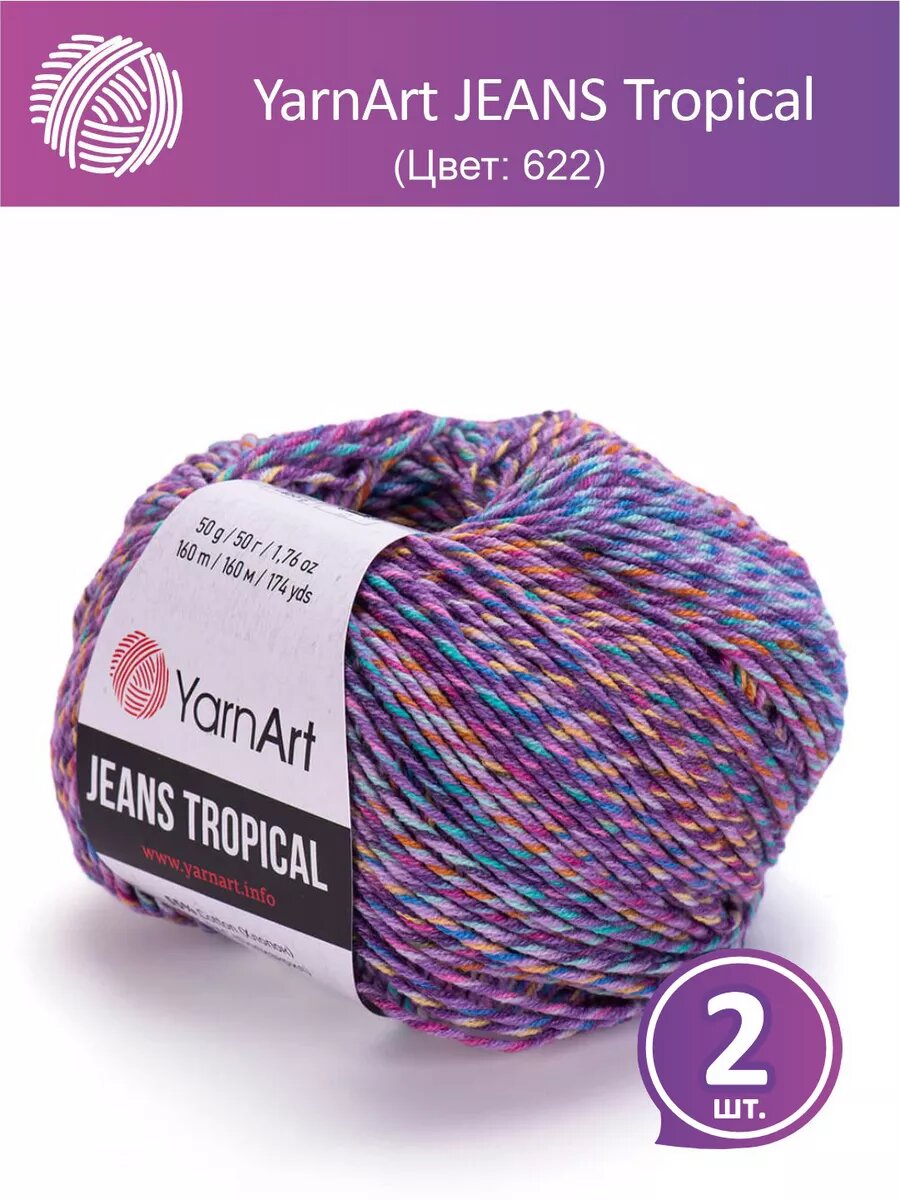 Пряжа YarnArt Jeans tropikal сиреневый меланж (622), 55%хлопок/45%акрил, 160м, 50г, 2шт информация: