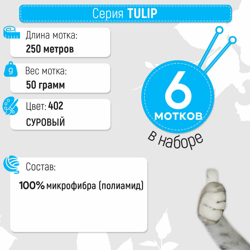 10 цен на Пряжа для вязания YarnArt 'Tulip', 50г, 250м (100% микрофибра) (402 молочный), 6 мотков