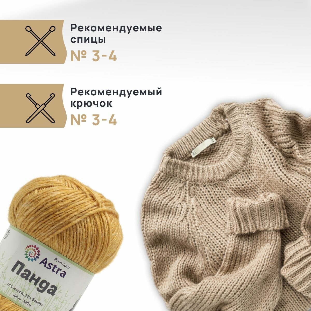 Пряжа для вязания Astra Premium 'Панда' (Panda), 100 г, 240 м (75% шерсть, 25% бамбук) (295 охра), 2 мотка информация: