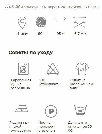 | Состав | 10% шерсть / 55% альпака / 20% нейлон |