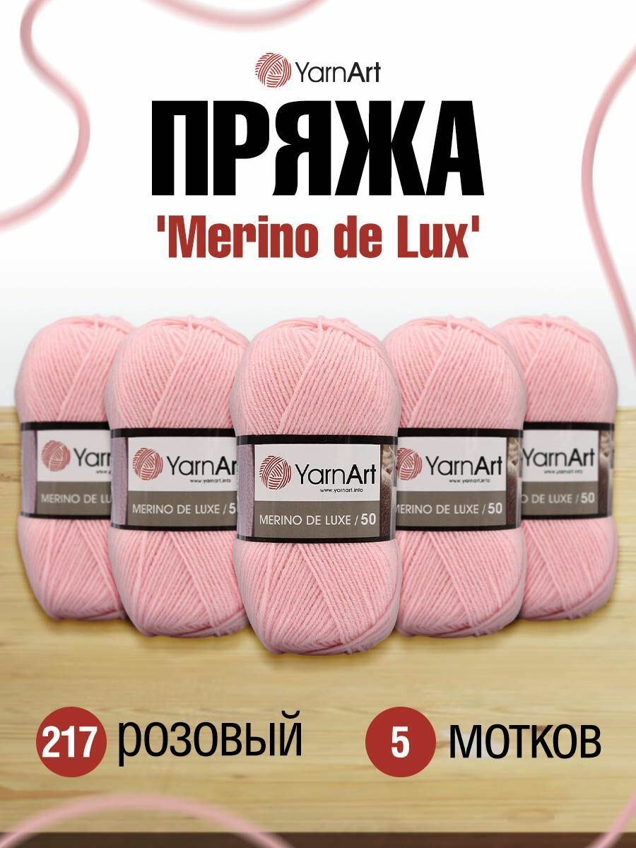 Пряжа MERINO DE LUXE 50 (YarnArt), неж. розовый - 217, 50% шерсть, 50% акрил, 5 мотков, 100 г, 280 м. 1 642 ₽