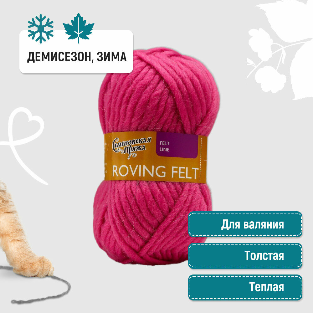 Пряжа для вязания Семеновская пряжа (Roving felt) Валя, шерсть 100%, розовая 5 шт. цвет 158 информация:
