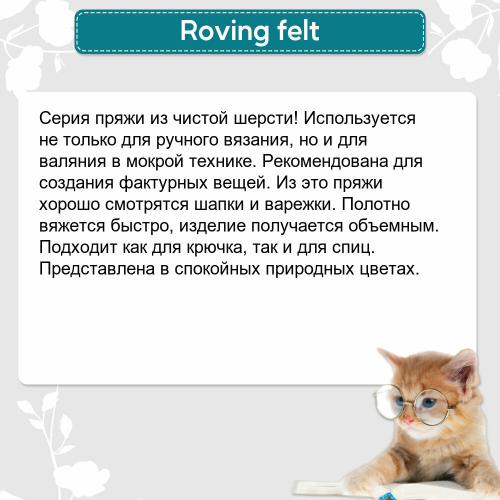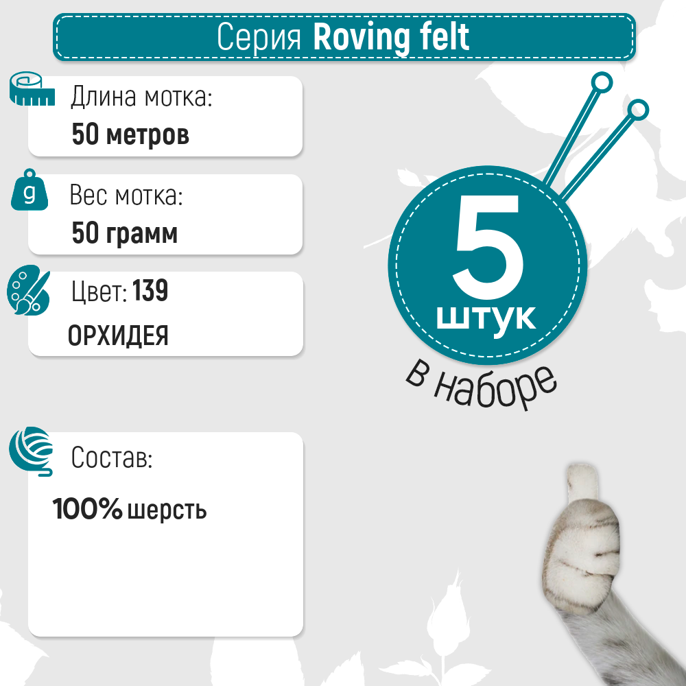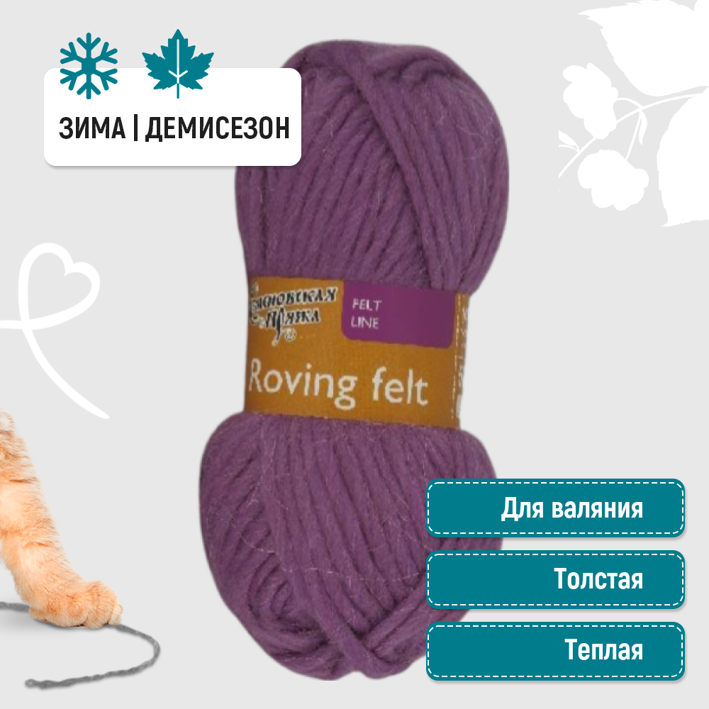 Пряжа Семеновская Roving felt (Валя) орхидея (139), 100%шерсть, 50м, 50г, 5шт информация: