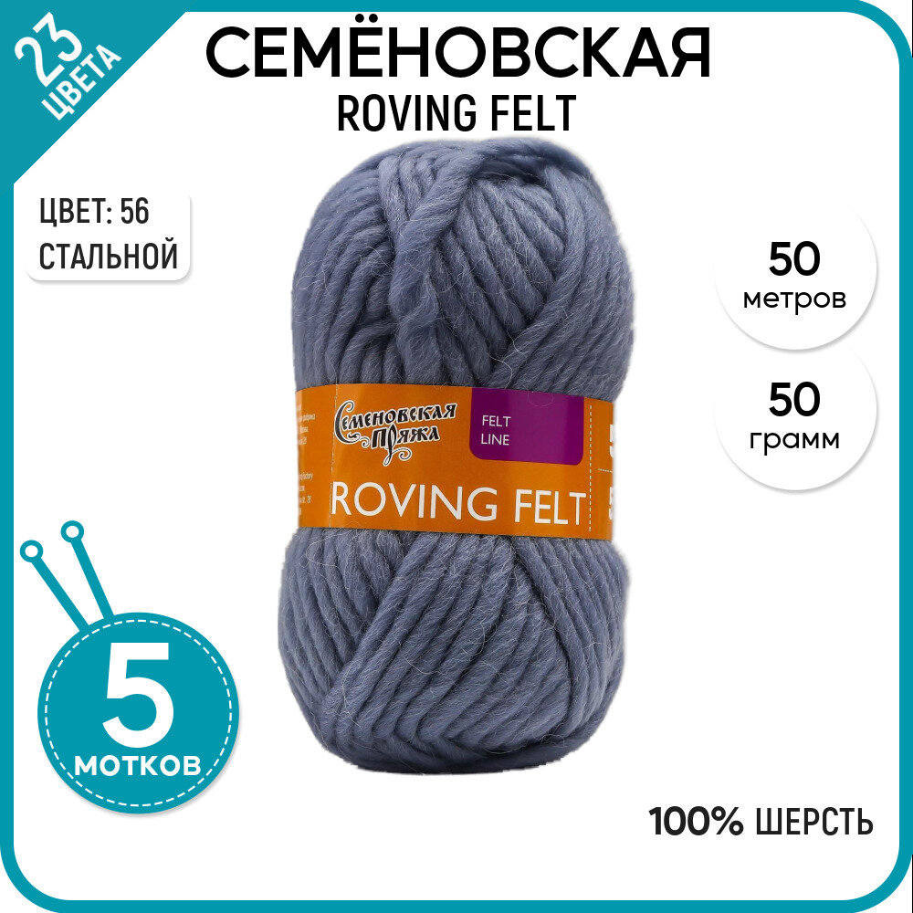 Пряжа для вязания Семеновская пряжа (Roving felt) Валя, шерсть 100%, серая 5 шт. цвет 56 информация: