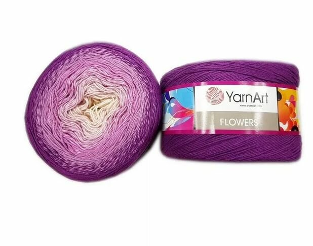 Отзывы на Пряжа YarnArt Flowers фиолетовый-сирень-розовый (290), 55%хлопок/45%акрил, 1000м, 250г, 1шт