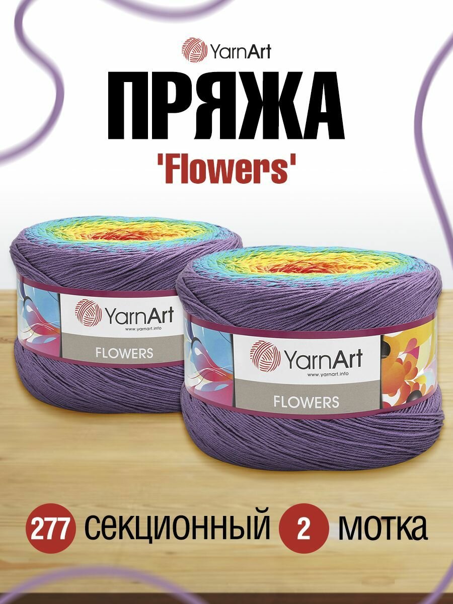 Пряжа для вязания YarnArt 'Flowers' 250г, 1000м (55% хлопок, 45% полиакрил) (277 секционный), 2 мотка информация: