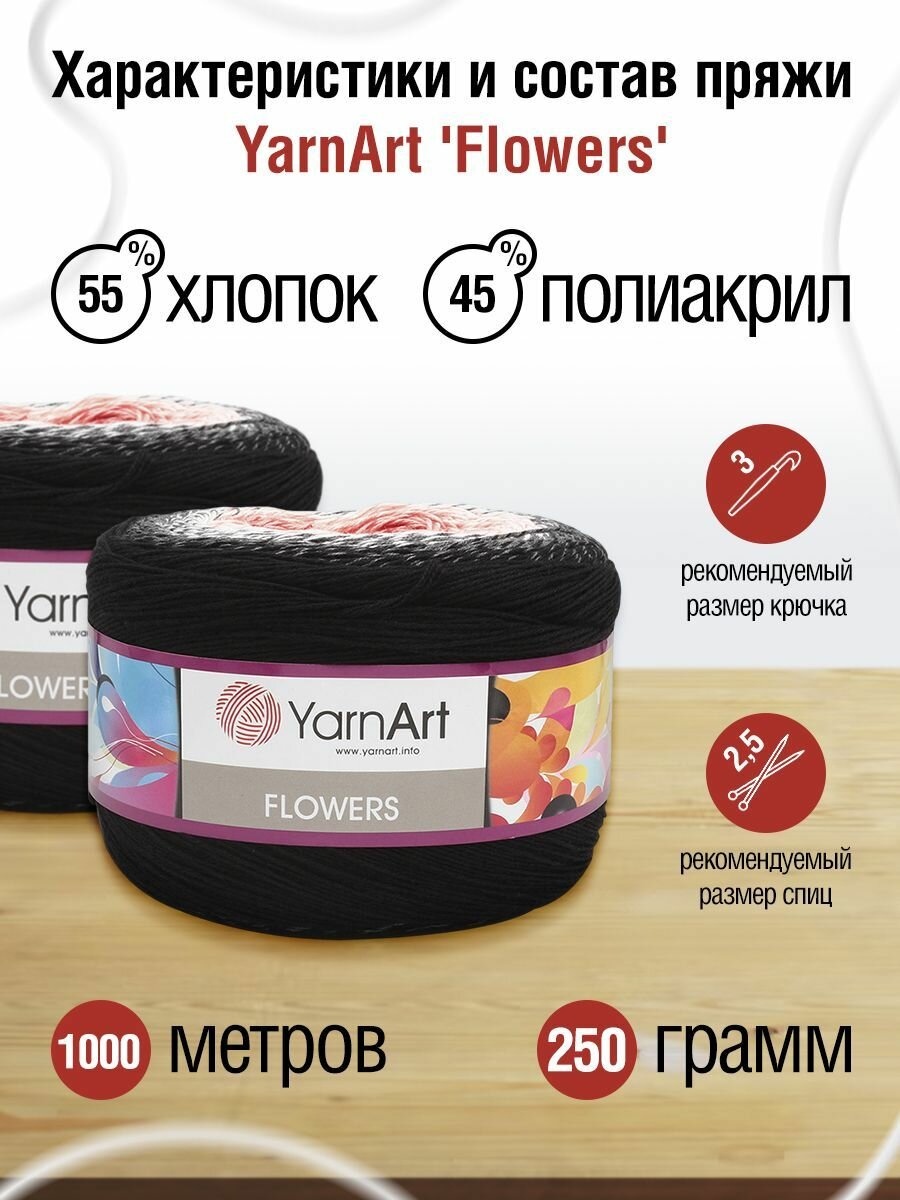 Пряжа для вязания YarnArt 'Flowers' 250г, 1000м (55% хлопок, 45% полиакрил) (260 секционный), 2 мотка информация: