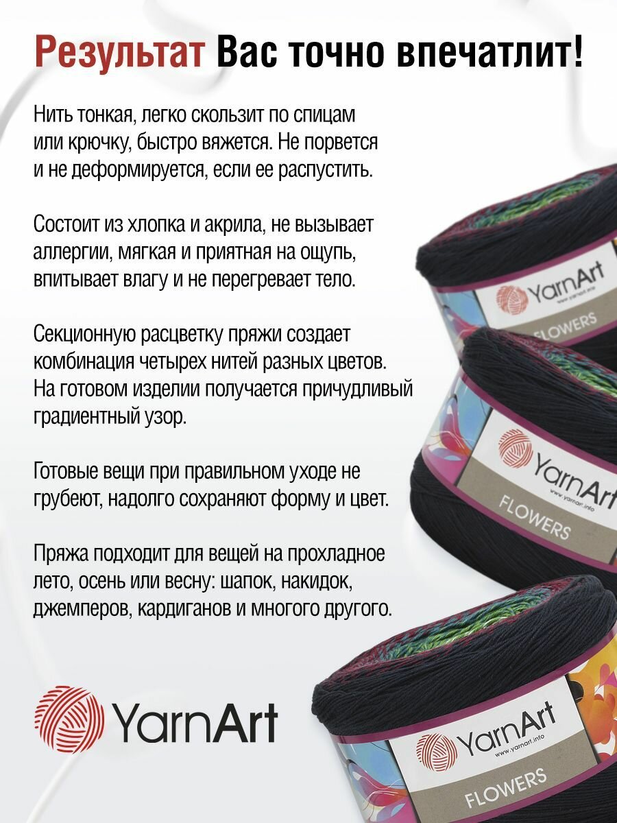Пряжа для вязания YarnArt 'Flowers' 250г, 1000м (55% хлопок, 45% полиакрил) (266 секционный), 2 мотка информация: