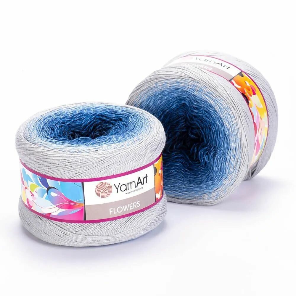 Пряжа YarnArt Flowers (ЯрнАрт Фловерс) - 1 моток цвет: 261 Голубой / серый / синий 55% хлопок, 45% полиакрил 1000м/250г