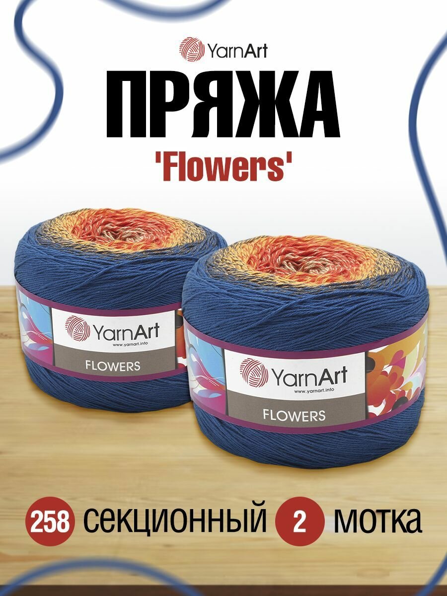 10 цен на Пряжа YarnArt Flowers синий-персик-оранжевый (258), 55%хлопок/45%акрил, 1000м, 250г, 2шт