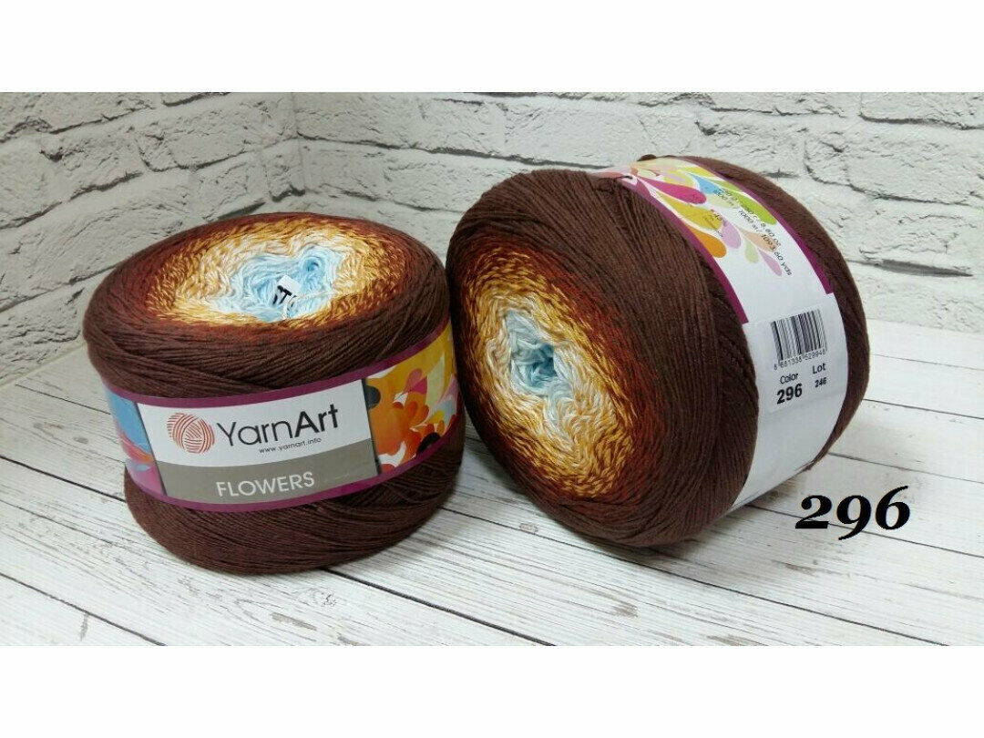 Отзывы на Пряжа YarnArt Flowers коричневый-песочный-белый-бирюзовый (296), 55%хлопок/45%акрил, 1000м, 250г, 1шт