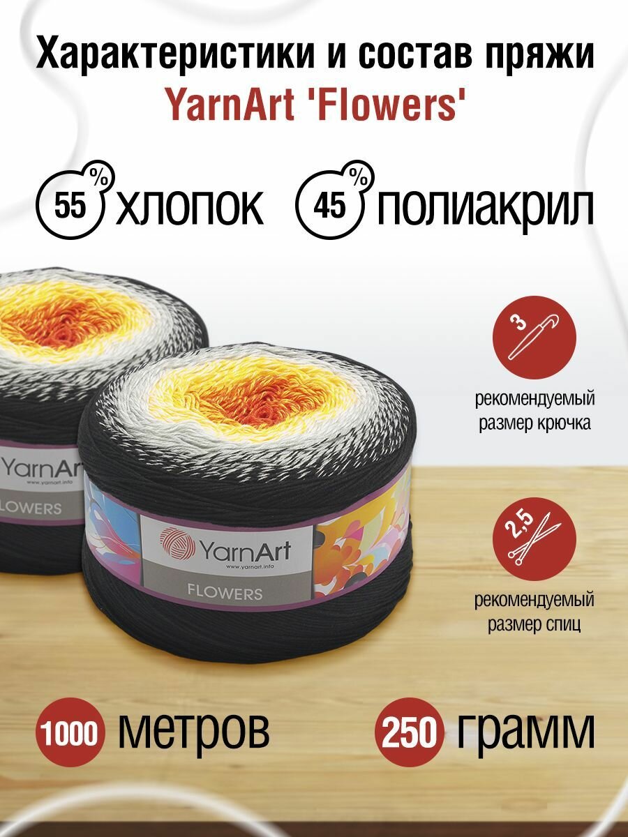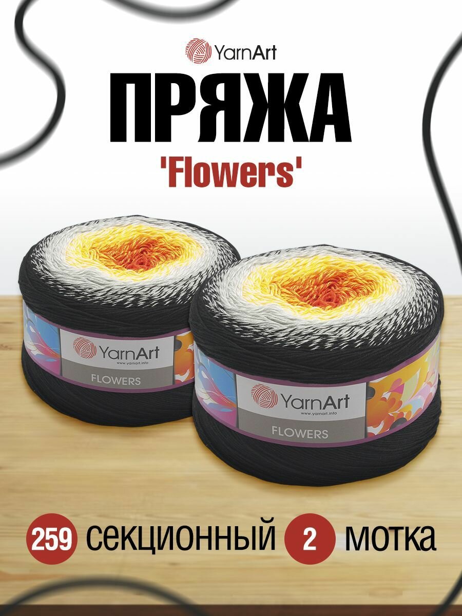 Пряжа для вязания YarnArt 'Flowers' 250г, 1000м (55% хлопок, 45% полиакрил) (259 секционный), 2 мотка информация: