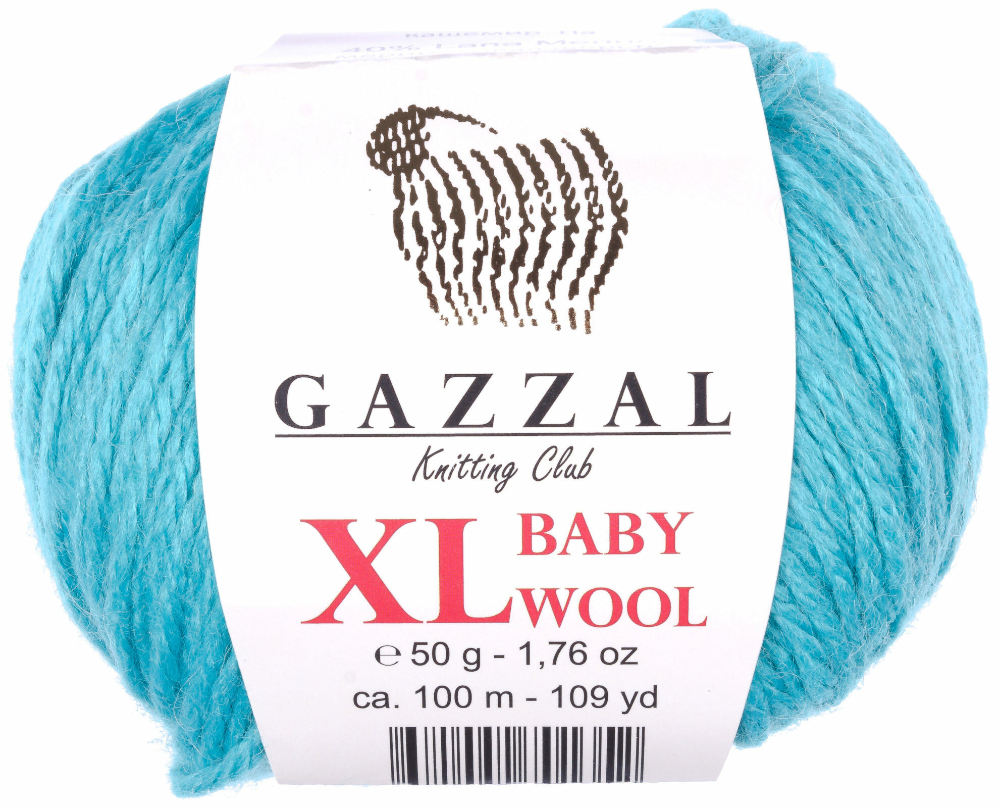 Пряжа Gazzal Baby Wool XL бирюза (820), 40%шерсть мериноса/20%кашемирПА/40%акрил, 100м, 50г, 1шт