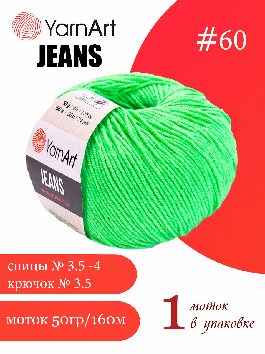 Отзывы на Пряжа YarnArt Jeans Ярнарт Джинс, 60 молодая трава, 55 % хлопок, 45 % акрил, 50 г, 160 м, 1 моток.