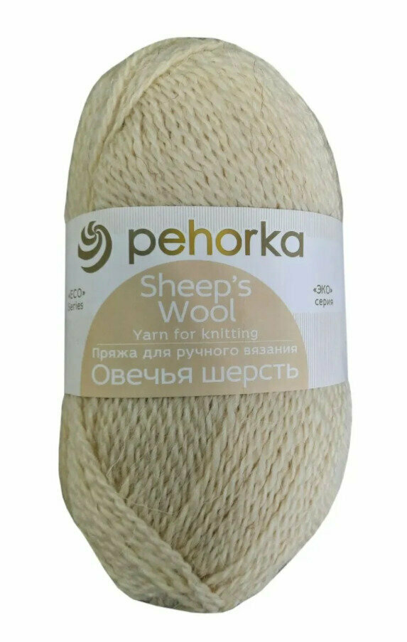 Пряжа для вязания крючком, спицами Пехорка Pehorka Овечья шерсть средняя, шерсть 100%, цвет 530, светлый натуральный, 10 шт. по 100 г, 200 м