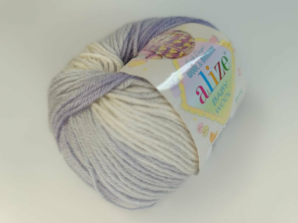 Отзывы на Пряжа Alize Baby Wool Batik белый-светло-сиреневый-фиолетовый (2167), 40%шерсть/20%бамбук/40%акрил, 175м, 50г, 1шт