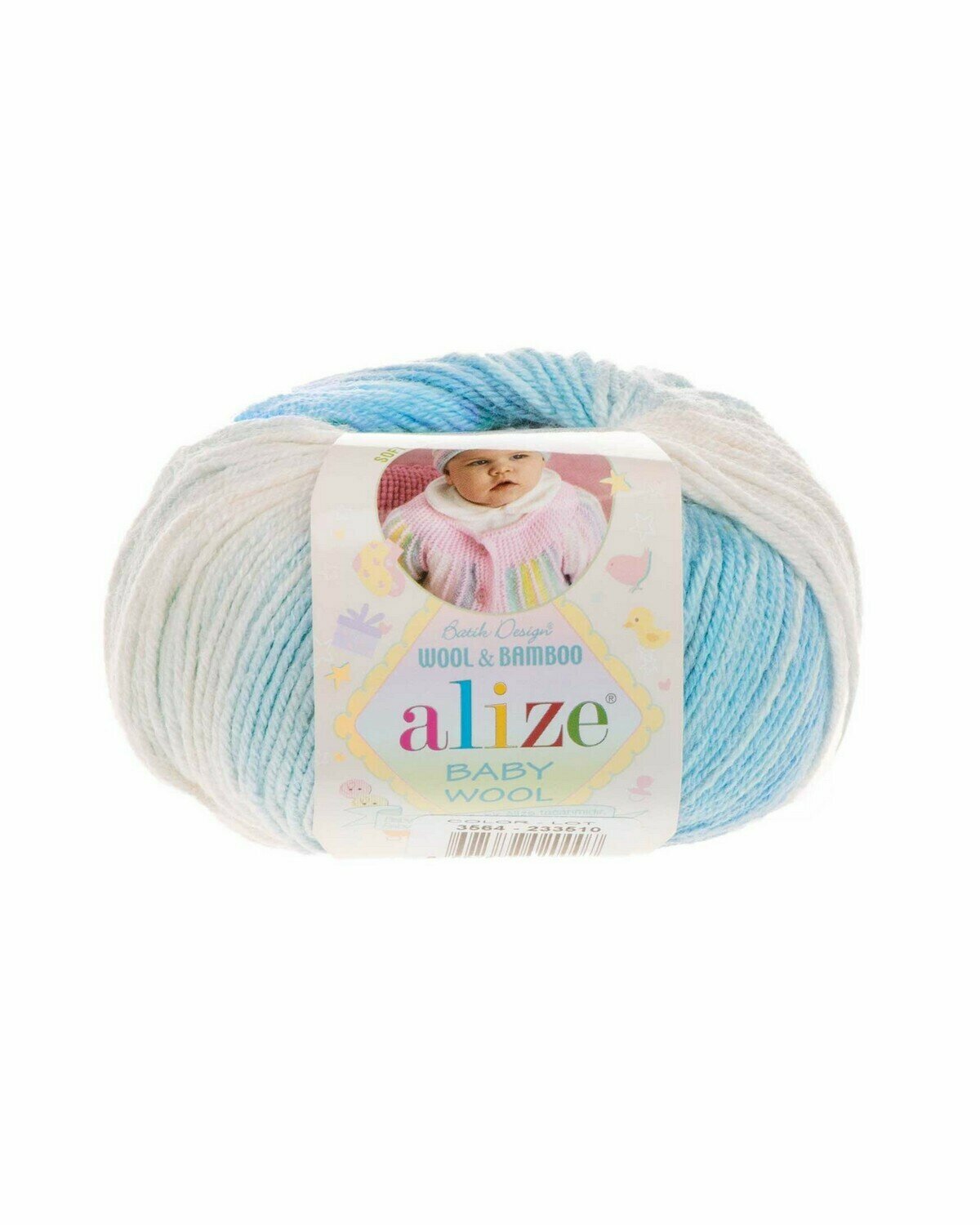 Пряжа Alize Baby Wool Batik бело-голубой (3564), 40%шерсть/20%бамбук/40%акрил, 175м, 50г, 1шт