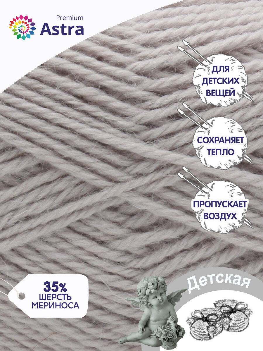 Пряжа для вязания Astra Premium 'Детская', 90г, 270м (35% шерсть меринос, 65% акрил) (168 светло-серый), 3 мотка 845 ₽