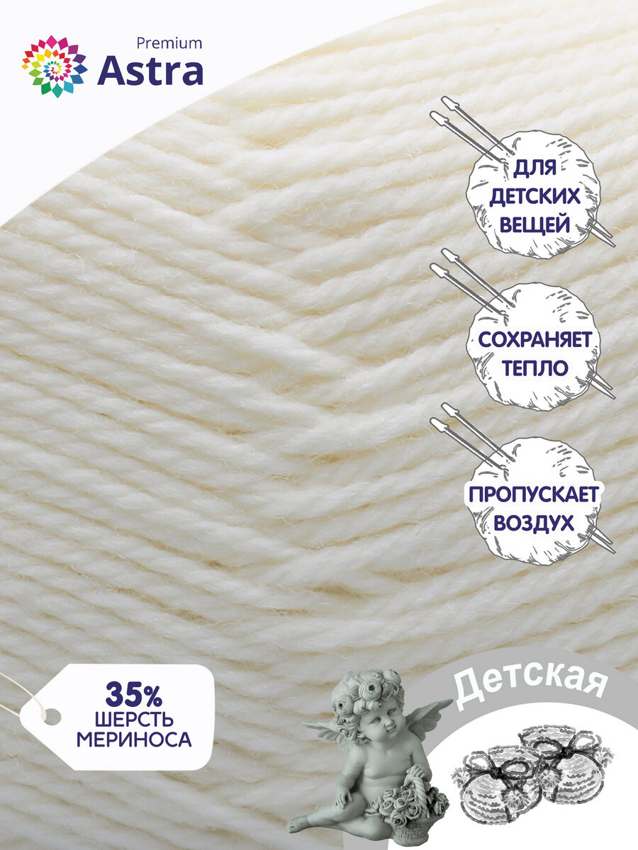 Отзывы на Пряжа для вязания Astra Premium 'Детская', 90г, 270м (35% шерсть меринос, 65% акрил) (205 белый), 3 мотка