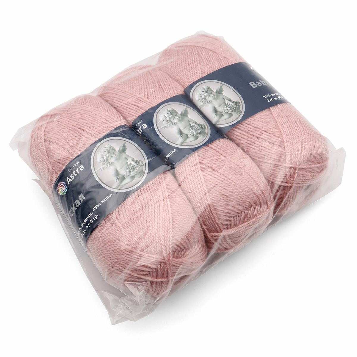 Пряжа Astra Premium "Детская", 90 гр 270 м, 35% шерсть меринос, 65% акрил, 055 светло-розовый, 3 шт