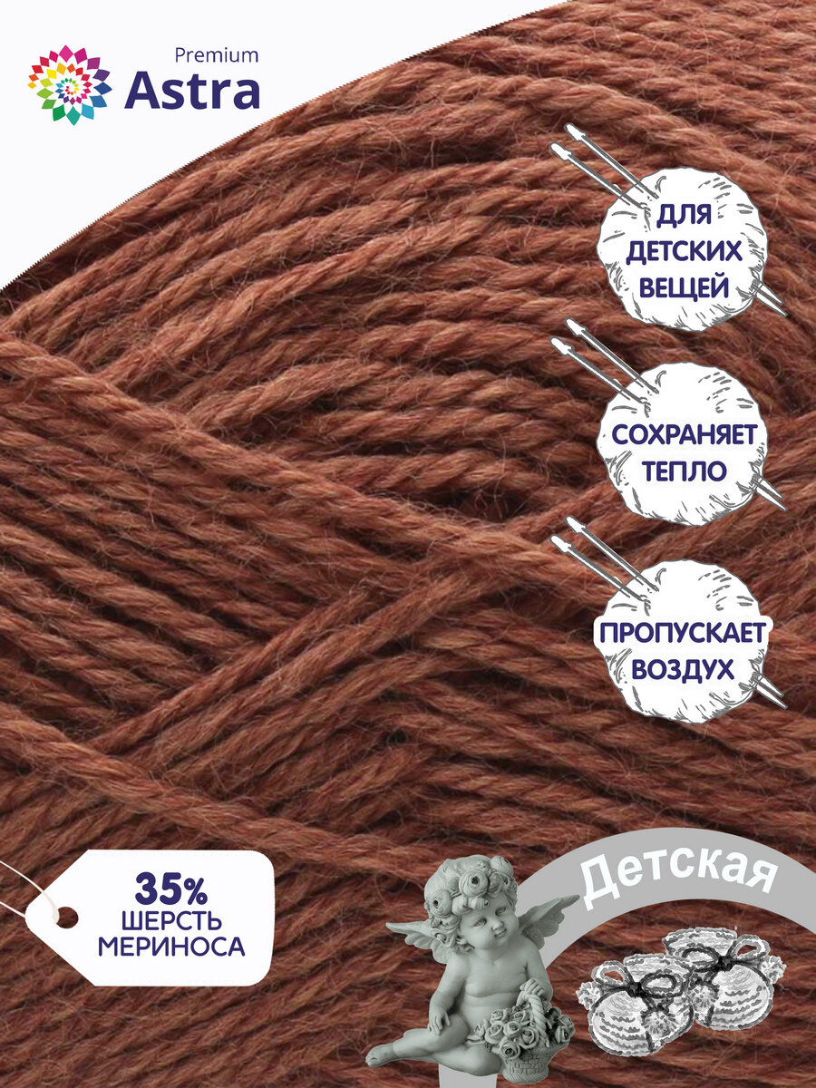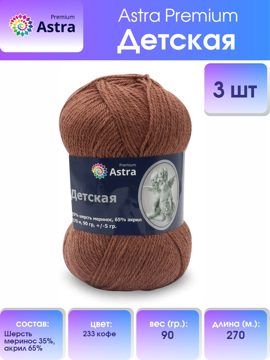 Пряжа для вязания Astra Premium 'Детская', 90г, 270м (35% шерсть меринос, 65% акрил) (233 кофе), 3 мотка информация: