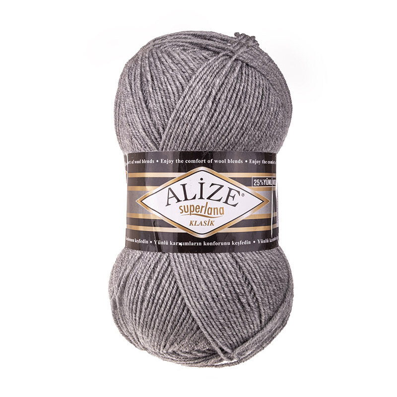 Пряжа Alize Superlana klasik серый меланж (21), 25%шерсть/75%акрил, 280м, 100г, 3шт информация: