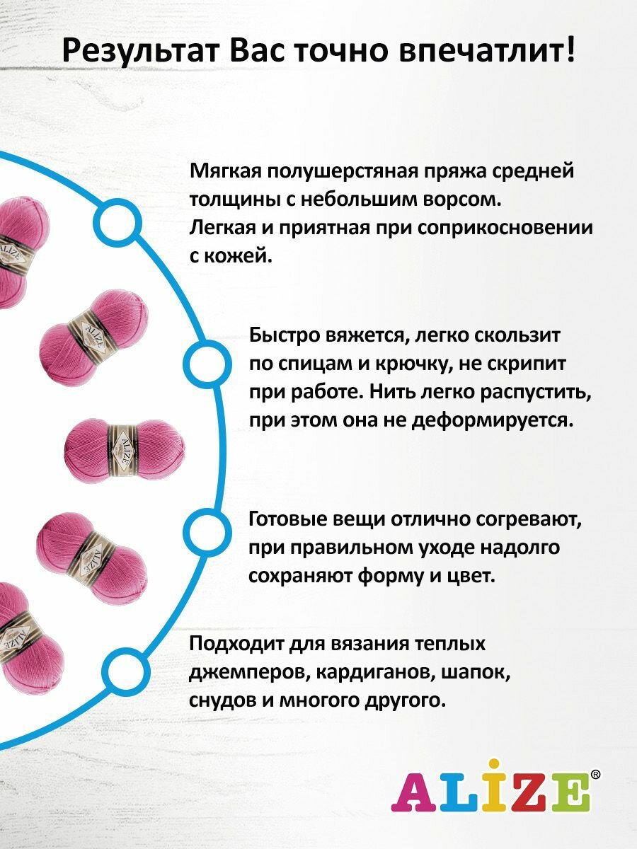 Отзывы на Пряжа Alize Superlana klasik темно-розовый (178), 25%шерсть/75%акрил, 280м, 100г, 5шт