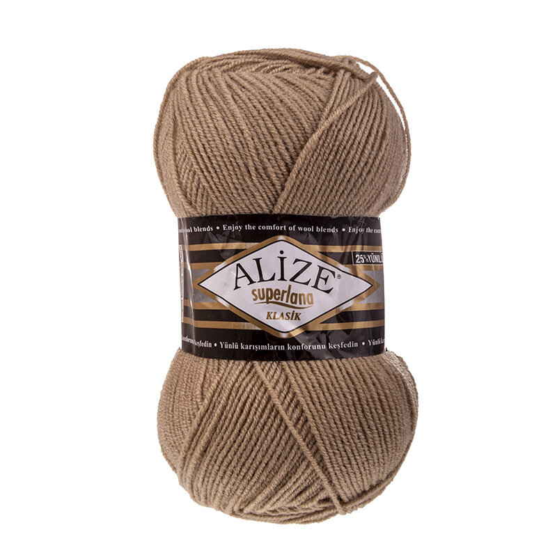 Пряжа Alize Superlana klasik (Ализе Суперлана Классик) - 2 мотка 466 темно-бежевый 25% шерсть, 75% акрил 100г/280м 545 ₽
