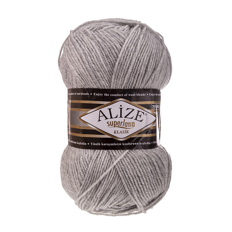 Пряжа Alize Superlana klasik светло-серый меланж (208), 25%шерсть/75%акрил, 280м, 100г, 3шт информация: