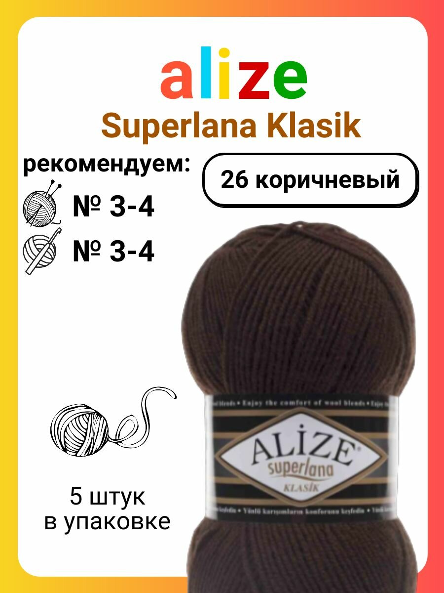 Пряжа Alize Superlana Klasik 26 коричневый, 100 г, 280 м, 5 штук информация: